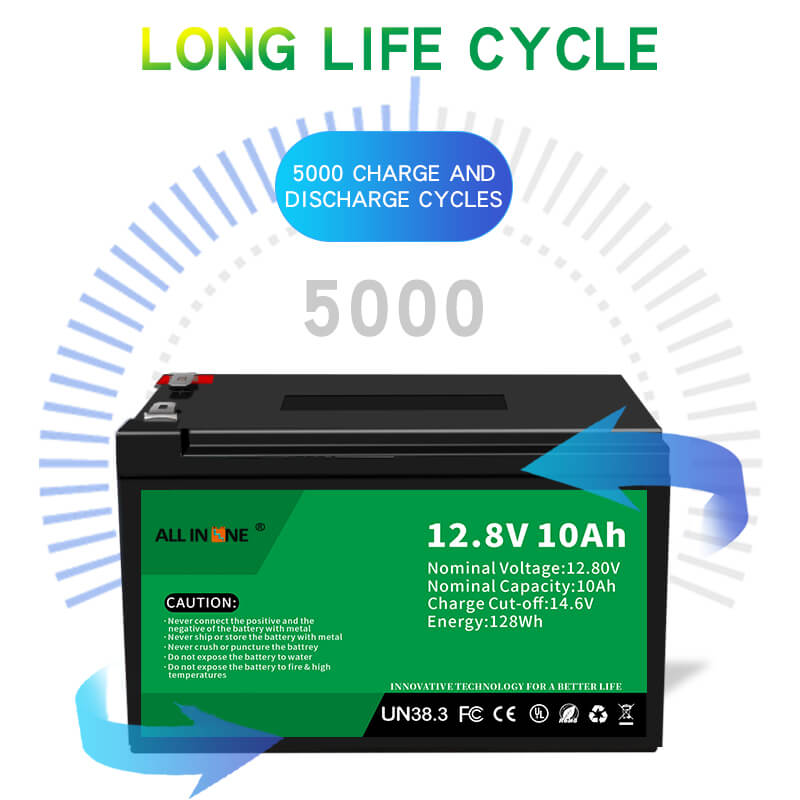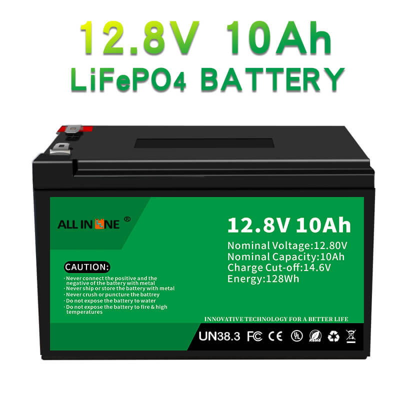 Aquesta bateria LFP de 12,8V 10Ah pot substituir perfectament la bateria AGM / GEL, ALLIN ONE també proporciona bateries personalitzades amb diferents capacitats, dimensions i funcions segons els requisits específics del client.