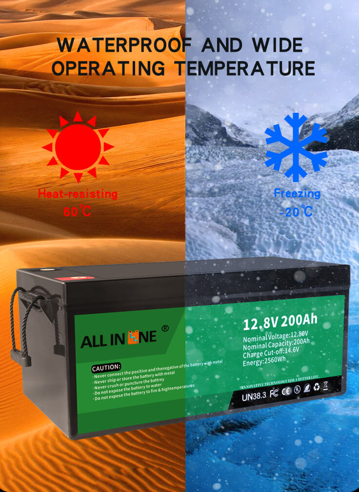 La temperatura màxima del fosfat de liti-ferro pot arribar als 350 ° C -500 ° C, mentre que el manganat de liti i el cobaltat de liti només es troben al voltant dels 200 ° C. Àmplia gamma de temperatures de funcionament (-20C- + 75C), amb resistència a alta temperatura, fosfat de ferro de liti el punt màxim de calefacció elèctrica pot arribar als 350 ° C-500 ° C, mentre que el manganat de liti i l’òxid de liti cobalt només a 200 ° C.
