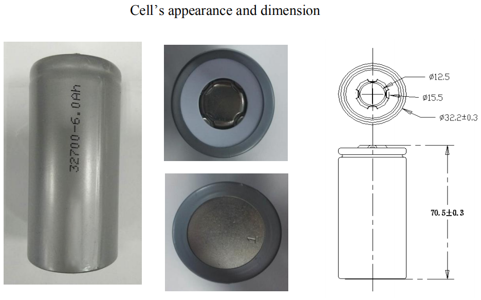 Cèl·lula SIze | Diàmetre: 32,2 ± 0,3 mm, màxim 32,5 mm | Alçada: 70,5 ± 0,3 mm, màx. 70,8 mm |