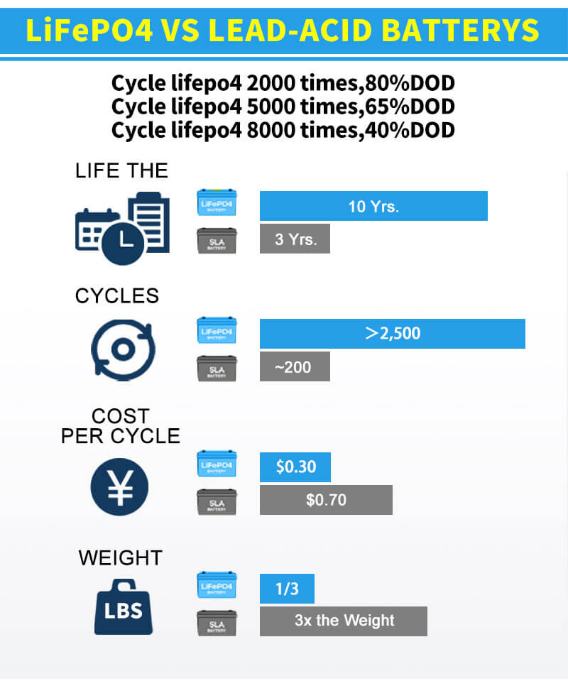 ◆ Pes més lleuger: al voltant del 40% ~ 50% del pes d'una bateria de plom àcida comparable.