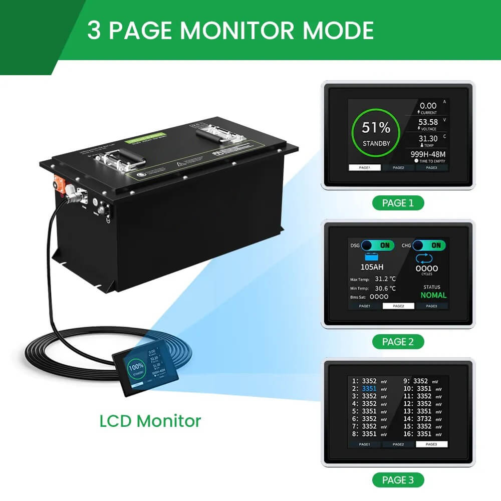 | LFP72-50 | 76,8 V | 50Ah | 3840Wh | 470*330*150mm | ≈50kg |