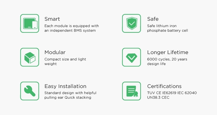 Certificació i seguretat Stadard | Acreditat TUV / CE / EN62619 / IEC62040 / UN38.3 / CEC | |